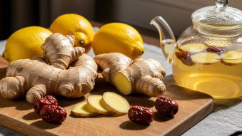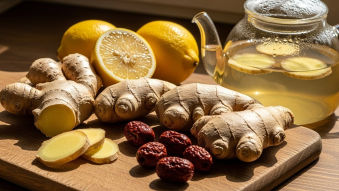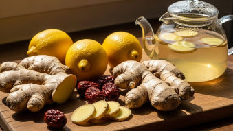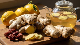 - 재료: 신선한 생강 50g, 물 1리터, 꿀 또는 설탕 (기호에 따라)